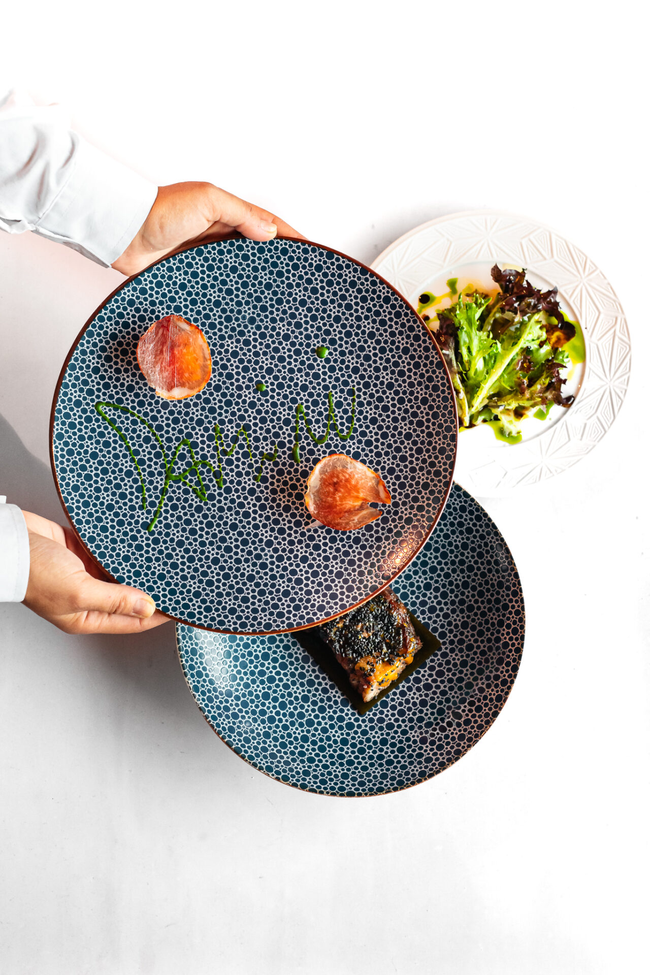 Un menu che “coglie l’attimo”, la sensibilità del momento seguendo la stagionalità, la disponibilità di materie prime d’eccezione. Questo nasce ogni giorno con l’arrivo di quell’ingrediente fresco, la scoperta di un nuovo artigiano, una verdura che solo oggi dà il suo meglio, sono un continuo stimolo alla creatività dello chef. Il menu a sorpresa è il manifesto di questo contesto felice che si rinnova con estro e intuizione, creato dopo prove, assaggi e bocciature perché i primi a mangiare i nuovi piatti sono loro: Giorgio e Serena.
